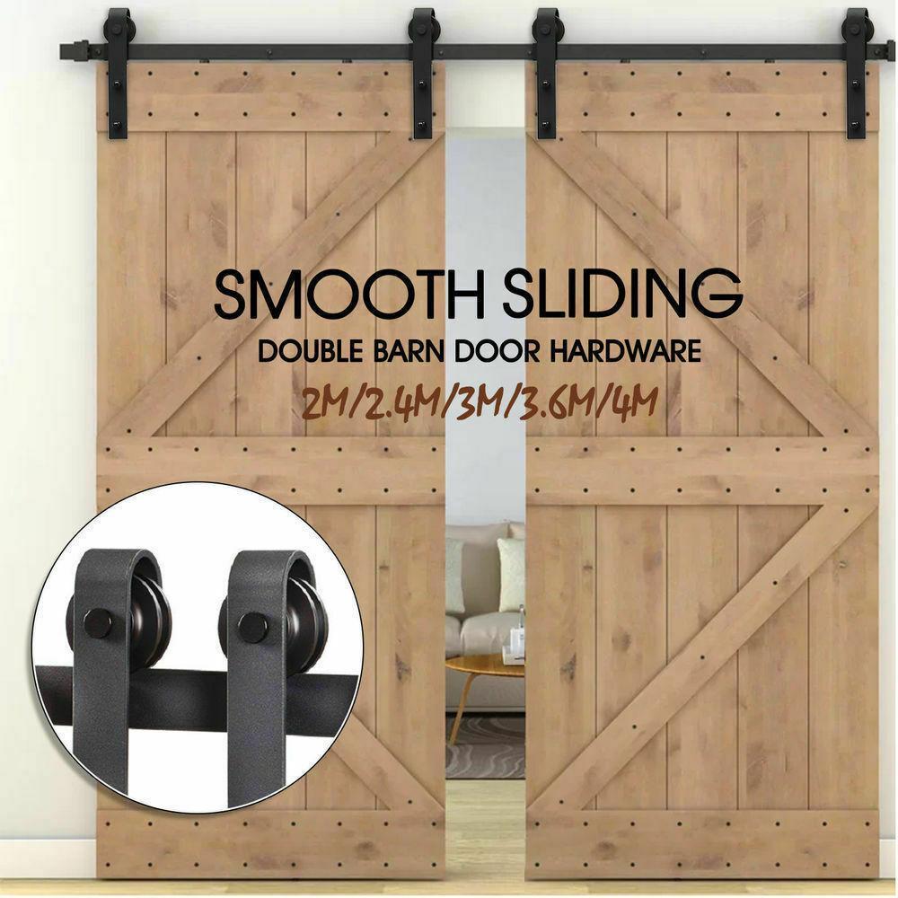 2.44M Antique Classic Style Double Sliding Barn Door Hardware Track Roller Kit