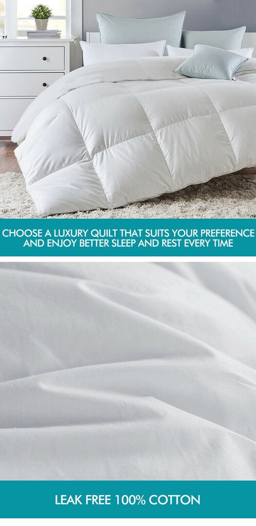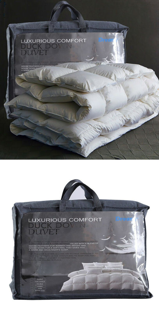 Indulge in luxury comfort with our finely constructed DreamZ Goose Down Feather Quilt. It's the perfect quilt to provide you with seasonal comfort and a great feeling at all times. Filled with duck down feathers with 500gsm weight, provides plenty of bounce and loft to keep the quilt light and airy, so while you may be warm you are not subject to a heavy weight.
