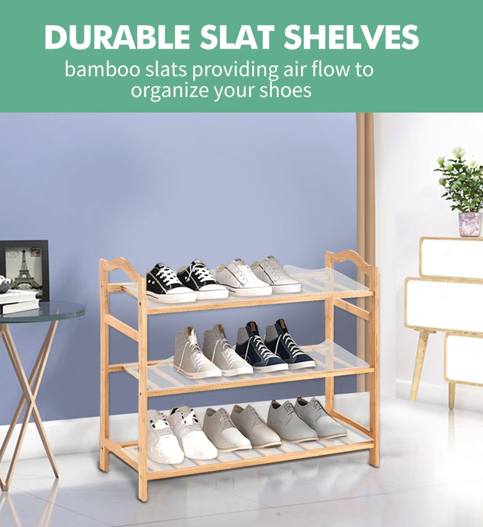 Levede Bamboo Shoe Rack Storage Wooden Organizer Shelf Stand 3 Tiers Layers 70cm