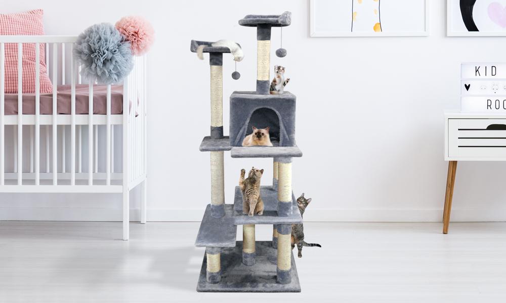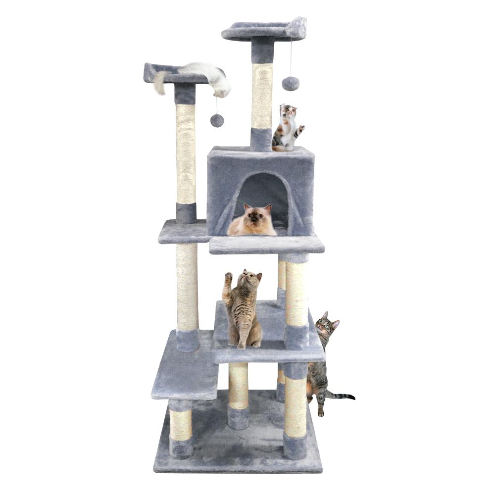 Your lovely active animal needs a place to let it be itself. And the PaWz Cat Scratch Tree is just the perfect thing to cater to your cats' natural instincts. Designed to be a condo that exudes a sense of security, the 1.45m Scratch Tree features cubby holes and platforms of various heights to allow your pet to jump, hop, skip, scratch, rest and nap to its heart's content. The poles are fully wrapped with thick sisal, which is ideal for your pet to practice her daily regime of keeping its claws in good shape. Also, it can help to keep your pet off your expensive furniture. Made from E1 standard board and natural sisal, the entire unit is both pet and eco-friendly with durable and longlasting qualities. What's more, the Scratch Tree is upholstered with a plush velvety surface for extra comfort and style!
