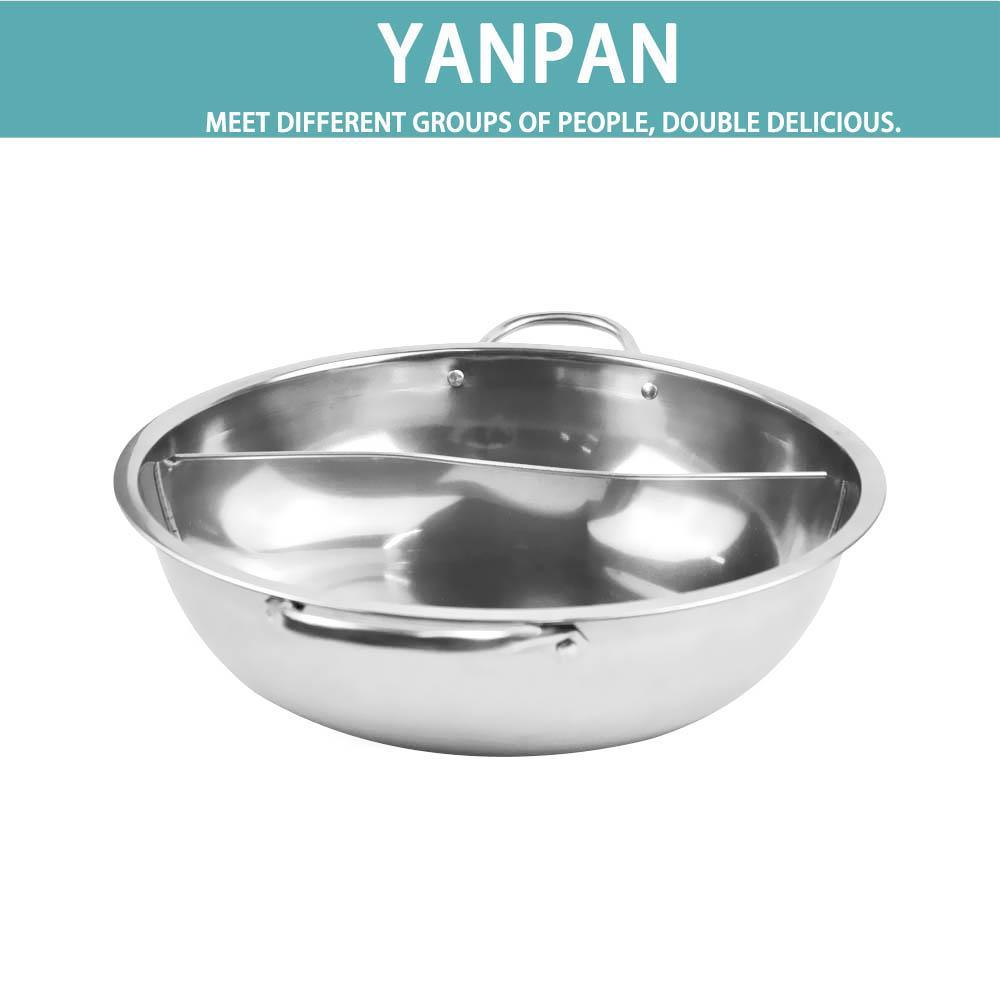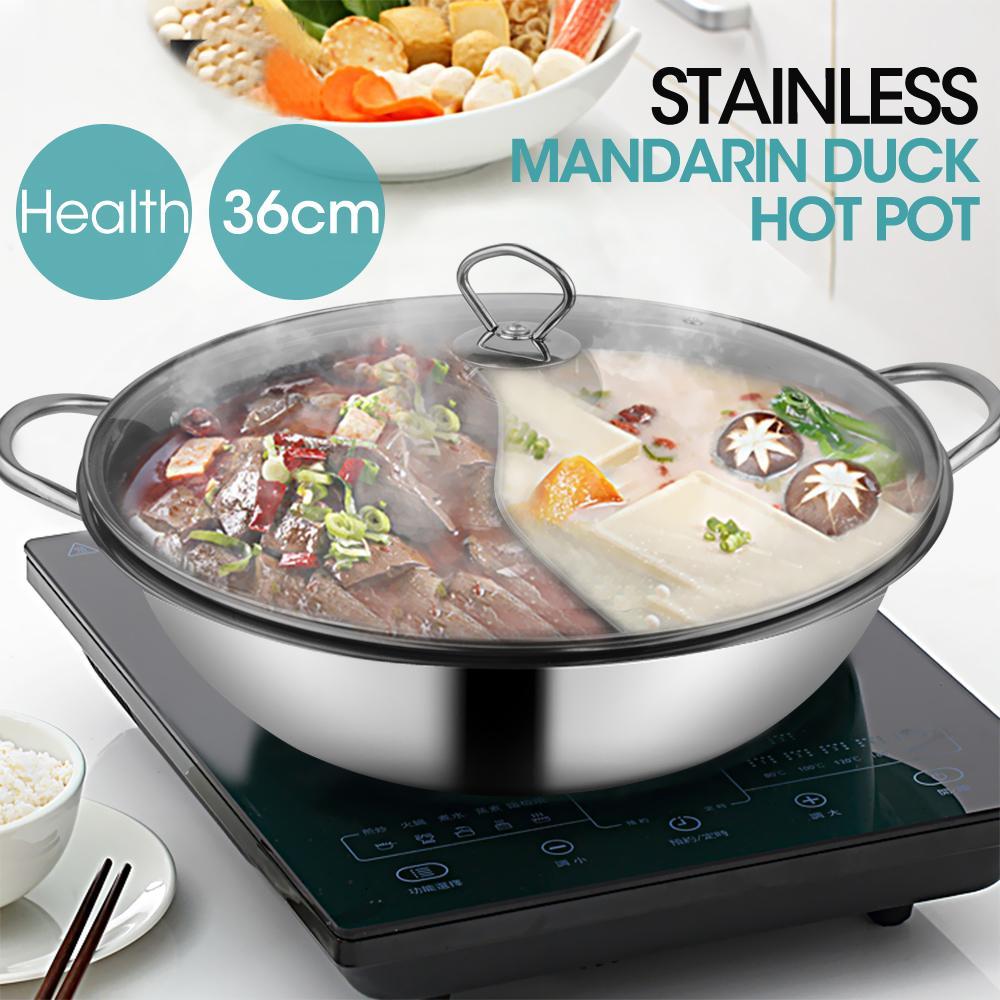 36cm Stainless Steel Twin Mandarin Duck Hot Pot Induction Cookware With Lid