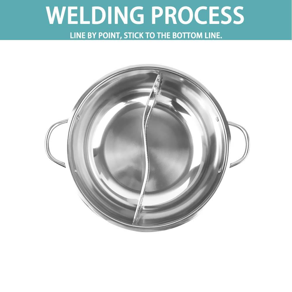 - Pot bottom smooth and shining, and spot welding marks clearly visible.