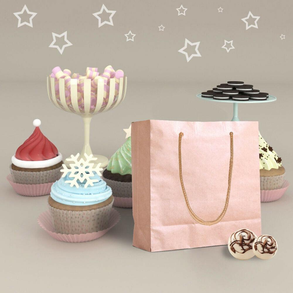 50x Brown Paper Bag Kraft Eco Recyclable Gift Carry Shopping Retail Bags Handles