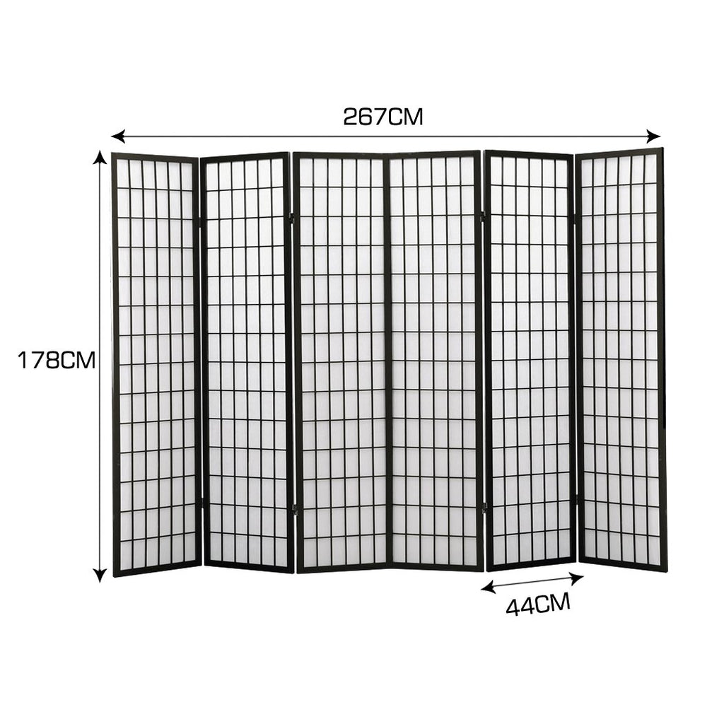 Levede 6 Panel Free Standing Foldable Timber Room Divider Privacy Screen with Black Frame